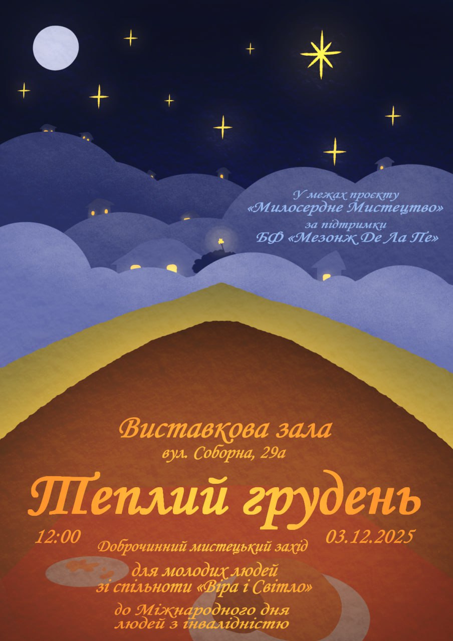 У цей вівторок, у Міжнародний день людей з інвалідністю, наша кафедра в рамках проєкту «Милосердне мистецтво» провела особливий доброчинний захід під назвою «Теплий грудень». Подія відбулася у Виставковій залі на вул. Соборній за підтримки БФ «Мезонж Де Ла Пе».